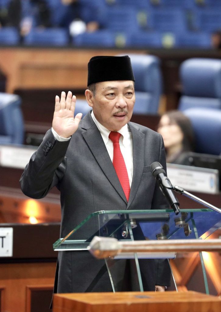 KOTA KINABALU: Ketua Menteri, Datuk Seri Panglima Haji Hajiji Haji Noor, mendahului barisan Ahli Dewan Undangan Negeri (ADUN) Sabah mengangkat sumpah sebagai wakil rakyat dalam upacara rasmi yang berlangsung di Dewan Mesyuarat Negeri, pada Khamis.